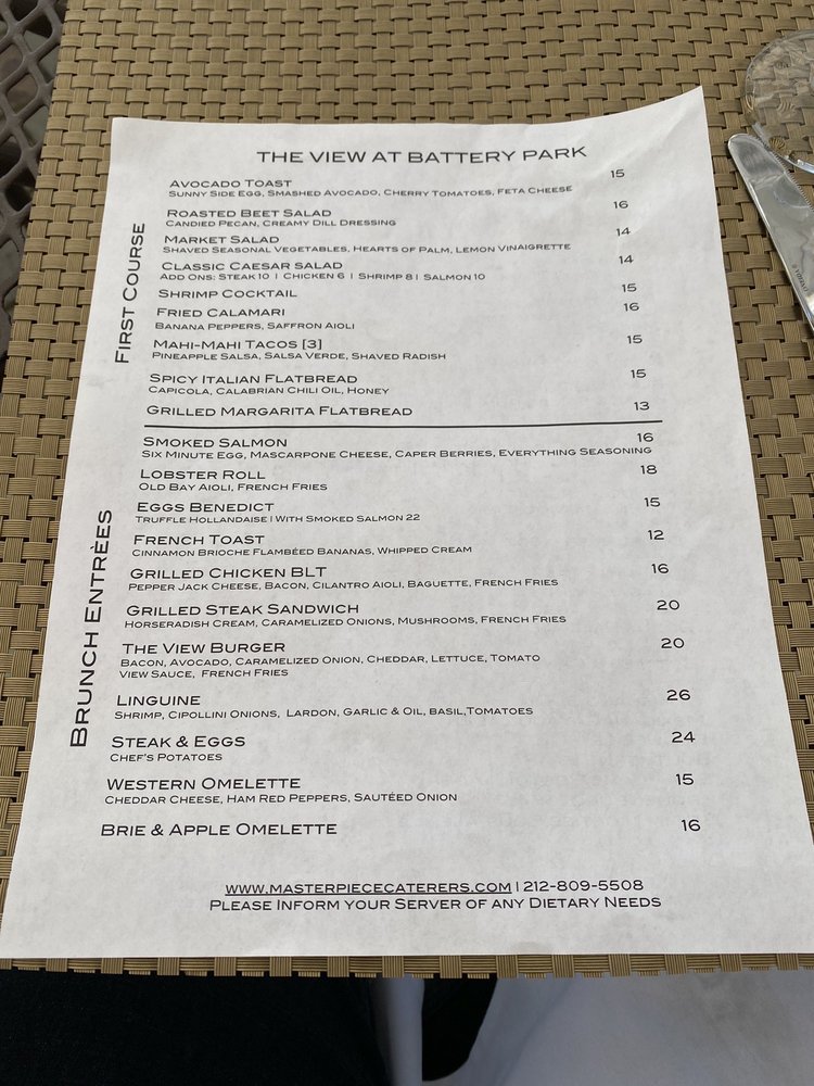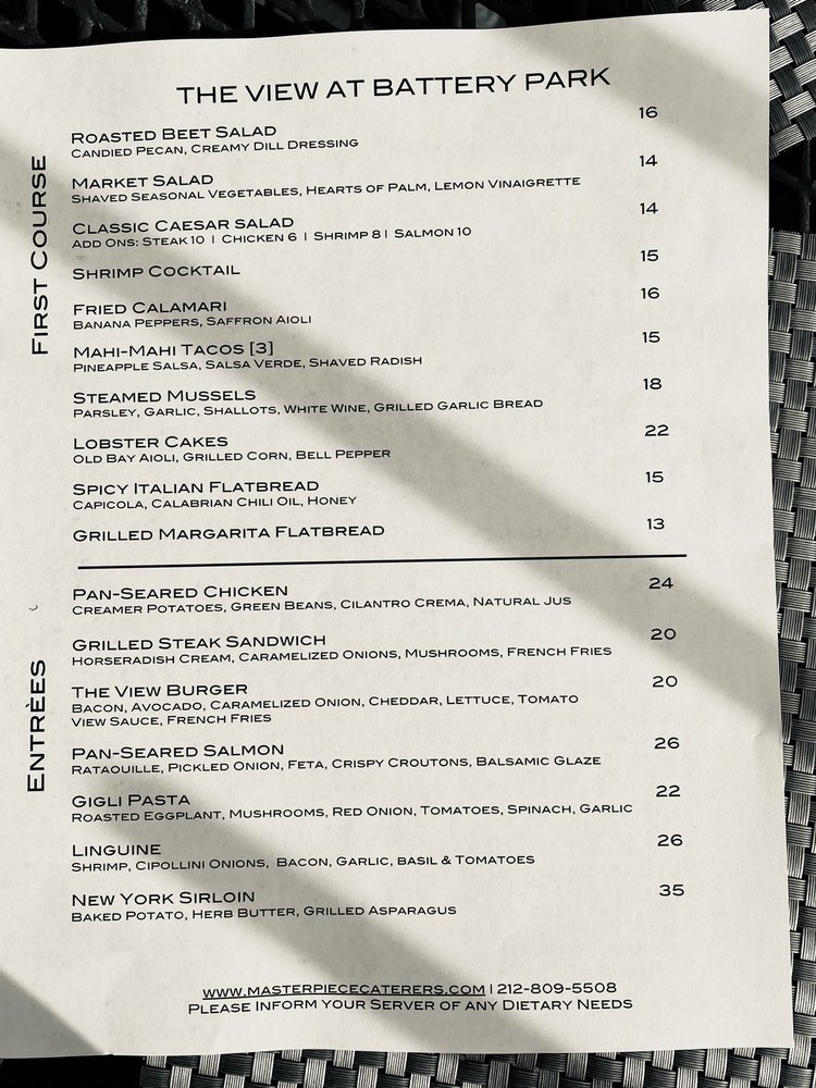 The View at Battery Park Beer Garten Menu (Update 2025)